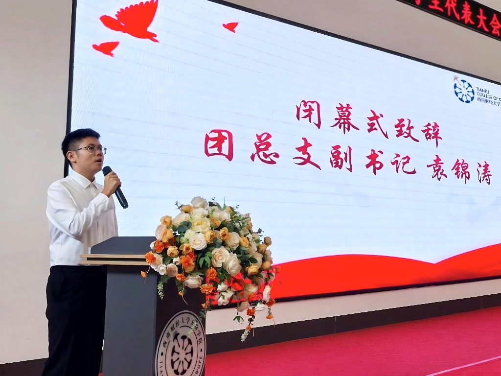 会议最后,学院团总支副书记袁锦涛老师致闭幕辞。他表示本次大会旨在深入学习贯彻党的二十大精神,系统总结学院团总支、学生会的工作成果,共谋未来发展蓝图。他希望全体代表继续发扬优良传统,团结引领广大同学扎实推进各项任务目标,并将大会精神广泛宣传、落到实处,把会议共识转化为前进动力,以坚定信念书写无愧于时代的青春篇章。