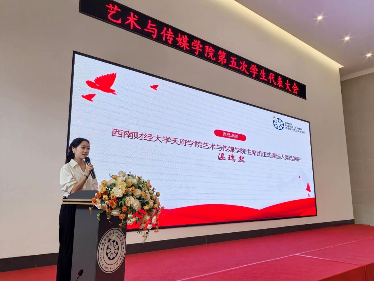 为明确学生工作高质量发展方向,助力青年学子全面成长成才,9月29日,艺术与传媒学院在成都校区(东区)238教室与德阳校区C203教室同步召开第五次学生代表大会。艺术与传媒学院分党委副书记马俊,团总支书记张元辰,副书记袁锦涛,团总支、学生会指导老师李涵、李翠翠、植洁、陈佳慧以及全体学生干部共同参会。本次大会以畅通师生沟通渠道、促进学生工作与学院发展同频共振为目标,致力于引导广大艺传学子坚定理想信念,锤炼责任担当,磨砺奋斗精神,努力成长为有理想、敢担当、能吃苦、肯奋斗的新时代青年,为学院高质量发展汇聚青春智慧、贡献青春力量。