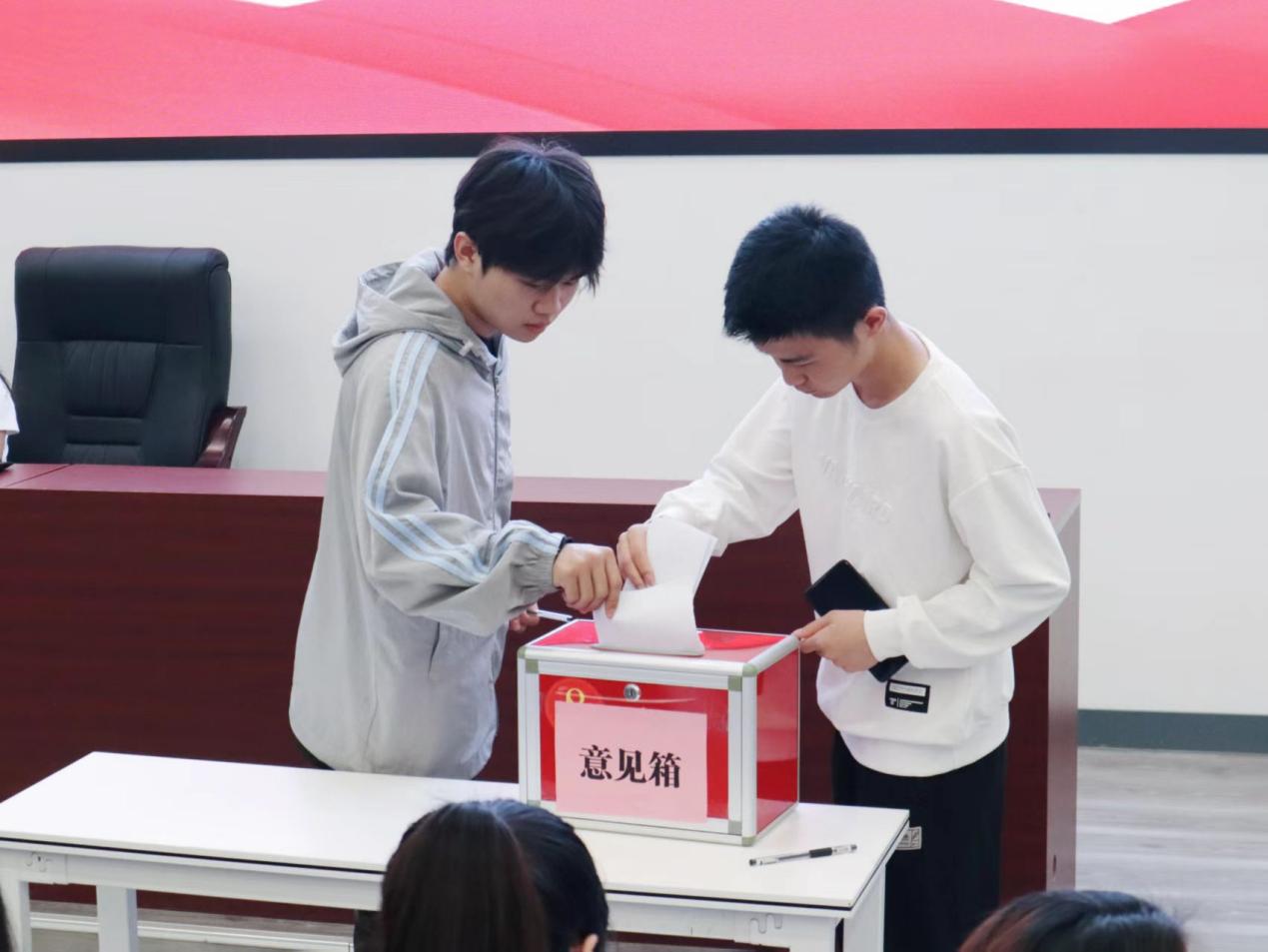 参会代表们聚焦学业发展与能力提升,围绕学校教学设施、学习生活环境等议题展开热烈讨论。讨论过程中,代表们踊跃发言,提出了一系列具有建设性的修改意见,并现场对意见进行系统整理,集中投入大会意见箱,以实际行动推动学校优化相关服务与管理,共同营造更加优良的成长与学习环境。