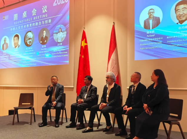 近日,第十一届全球经济论坛维也纳峰会文化教育论坛在奥地利隆重举行。西南财经大学天府学院校长蒲果泉、副校长钟成,学院美术馆馆长蒲果毅,艺术与传媒学院客座教授、成都市公共艺术学会秘书长赵弥应邀出席,与来自奥地利、德国及多国艺术、教育、工商界人士就“中国公共艺术与全球艺术的融合与共创”展开深入交流。