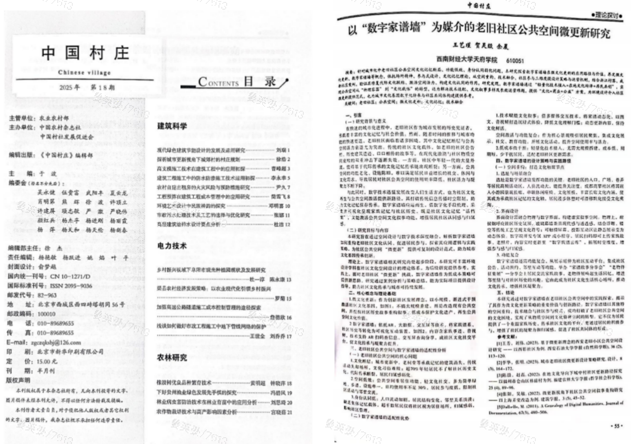 杨潇涵老师指导环境设计专业学生王艺瑾等同学完成论文《以“数字家谱墙”为媒介的老旧社区公共空间微更新研究》的撰写,并发表于《中国村庄》杂志2025年第18期。