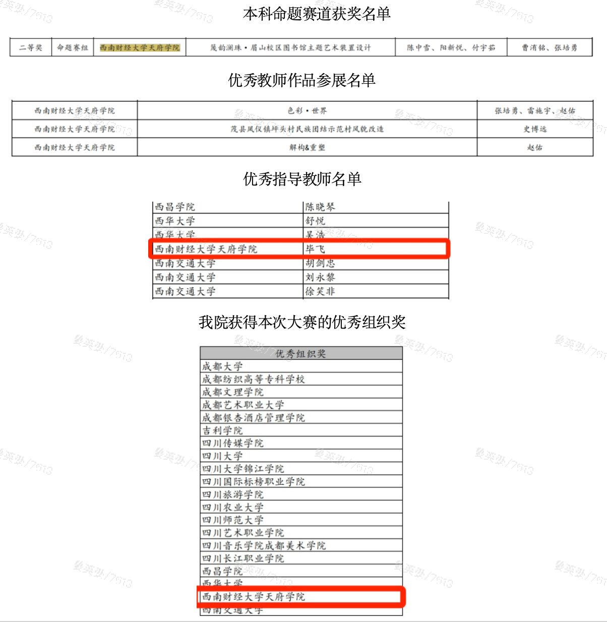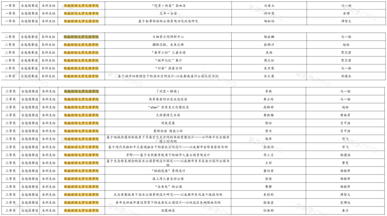 2025年11月8日,2025年四川省大学生环境设计大赛暨第十一届“中装杯”全国大学生环境设计大赛(四川赛区)颁奖典礼暨设计教育论坛在四川大学博物馆圆满落幕。本届大赛由四川省教育厅主办,四川大学承办。西南财经大学天府学院艺术与传媒学院副院长毕飞,环境设计系教师曹洧铭、费雯、谭智文、李叁陆参与了本次活动。