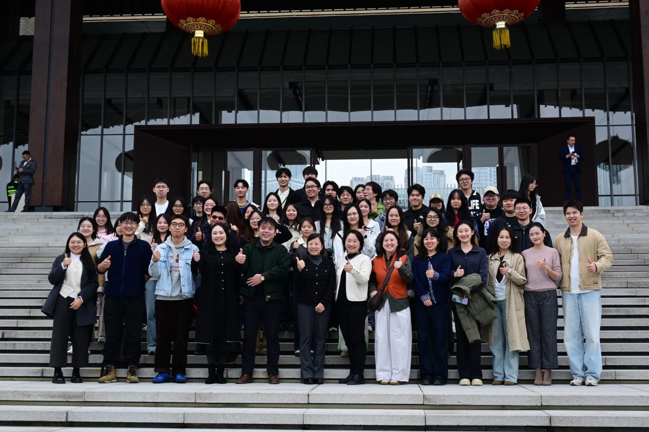 我校师生在天府影像中心前合影留念