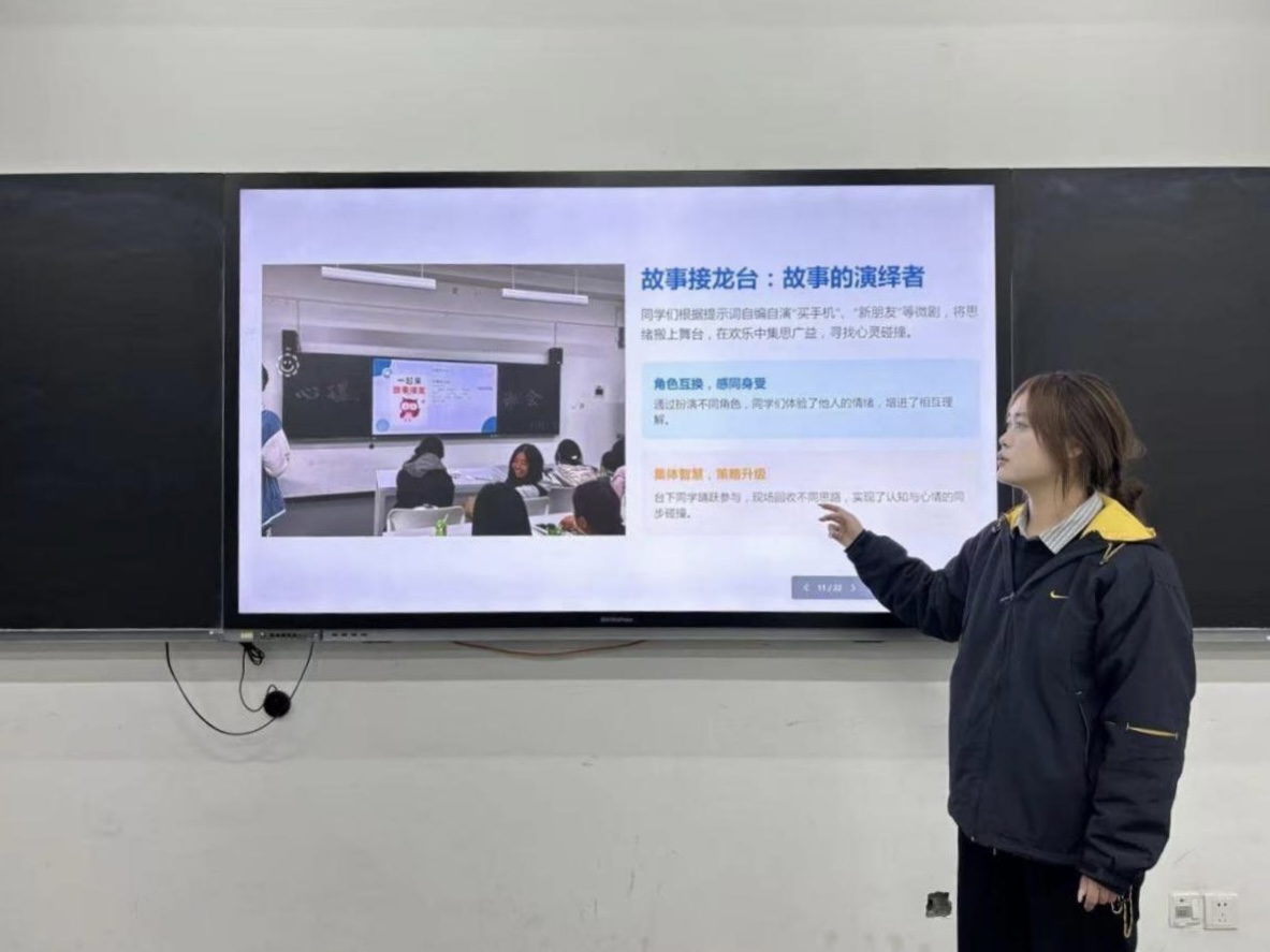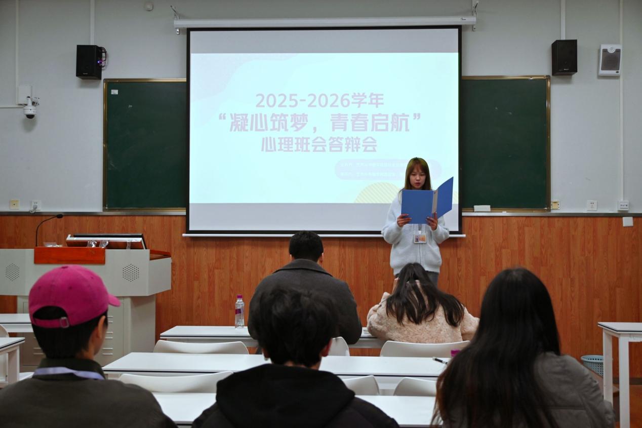 答辩现场,各班代表依次上台,就心理班会的整体设计、实施流程、形式创新、参与度及育人实效等方面进行了逻辑清晰的阐述。在一段段分享中,既有策划者的巧妙构思,更不乏源自班级生活的真实案例,将同学们在情绪、压力、交往等议题上的感悟与实践跃然纸上。这不仅是一场成果汇报,更是一幅生动的成长叙事画卷,深刻折射出心理班会在夯实学生心理健康根基中所蕴含的磅礴力量。