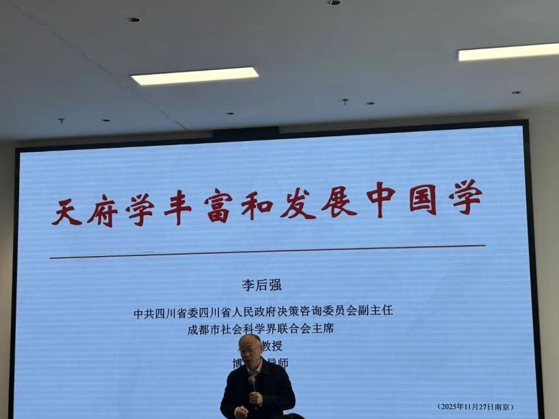 近日,2025年中国地方学年会暨南京学学术年会在金陵科技学院举办,会议以“中华文明赓续与现代化人民城市建设的地方实践”为主题,来自全国30余家地方学研究机构的80余位专家学者齐聚金陵,共话地方学发展方向与前景。本次活动由南京市南京学研究会、金陵科技学院与中国地方学研究联席会联合主办。成都市社会科学界联合会主席、四川省社会科学院二级教授、博士生导师、西南财经大学天府学院天府学研究中心名誉主任李后强,四川省社会科学院副研究员李贤彬、西南财经大学天府学院艺术与传媒学院院长李文波受邀参加了本次会议。