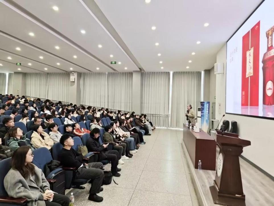 在问答环节,学生们围绕人工智能时代设计师的核心竞争力、传统文化创新表达等议题积极提问。陈小林教授以诙谐幽默的语言,把理论性较强的设计原理转化为易于理解的内容,赢得了阵阵掌声。讲座临近尾声,陈小林教授介绍了“第一届全国未来包装设计大赛‘剑南春杯’”的详细信息。此项全国性赛事为学生提供了将理论应用于实践的珍贵平台,与讲座主题高度契合。大赛设置“文创联名产品包装设计”和“未来创新产品包装设计”两个方向,激励学生着眼于未来市场趋势,突破传统材料、结构和造型的局限。截稿日期为2025年12月28日,为学生们提供了展示创新能力的机会。