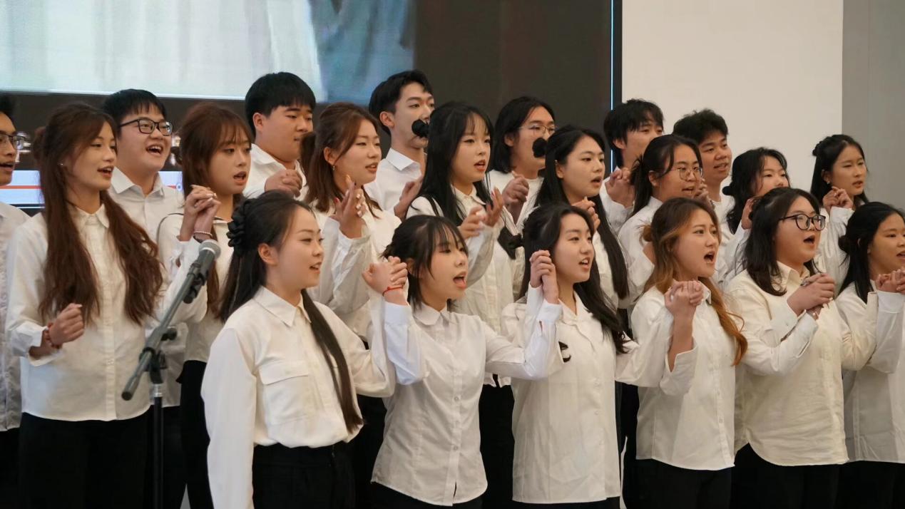 比赛现场光影交织,掌声如潮。各班按序登台,凭借出色的舞台表现与富有创意的编排,集中展示了团队的凝聚力与艺术才华。演绎的曲目既有《我们都是追梦人》的奋进号角,也有《紫荆花盛开》的深情礼赞,更有《国家》的磅礴情怀。同学们用歌声诠释经典,唱出了青年之志、家国之思,也完成了红色精神的当代表达。本次活动成功将艺术舞台转化为思政课堂,是学院推动美育工作与思想引领深度融合的一次生动展示。