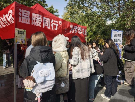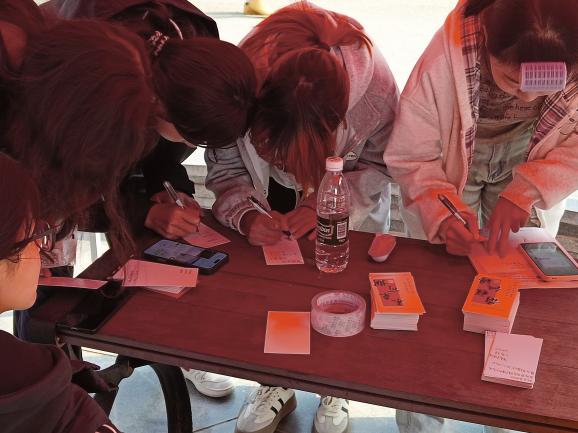 活动启动阶段,学院党建服务中心在成都校区(东区)开展了考研祝福卡片征集活动。同学们踊跃参与,或以真挚笔触写下温暖寄语,或以创意手绘描绘励志图景,“愿你笔锋所至,梦想开花”“全力以赴,终将上岸”等话语承载着对考研学子的深切祝愿。现场氛围温馨热烈,不少同学主动与工作人员交流,表达对备考学长学姐的支持与鼓励。这份真挚的跨年级情谊,在冬日校园中传递出浓浓的暖意与力量。