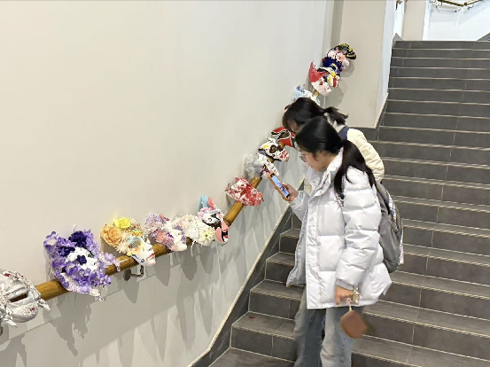 展览现场划分为学生作品展与手工艺工坊两大主题区域。学生作品展品类丰富、艺术风格多元各异,传统与现当代艺术的融合呈现出全新的视觉体验,使观众得以感受大学生活的丰富多元,同时体悟到中华优秀传统文化的深厚底蕴。