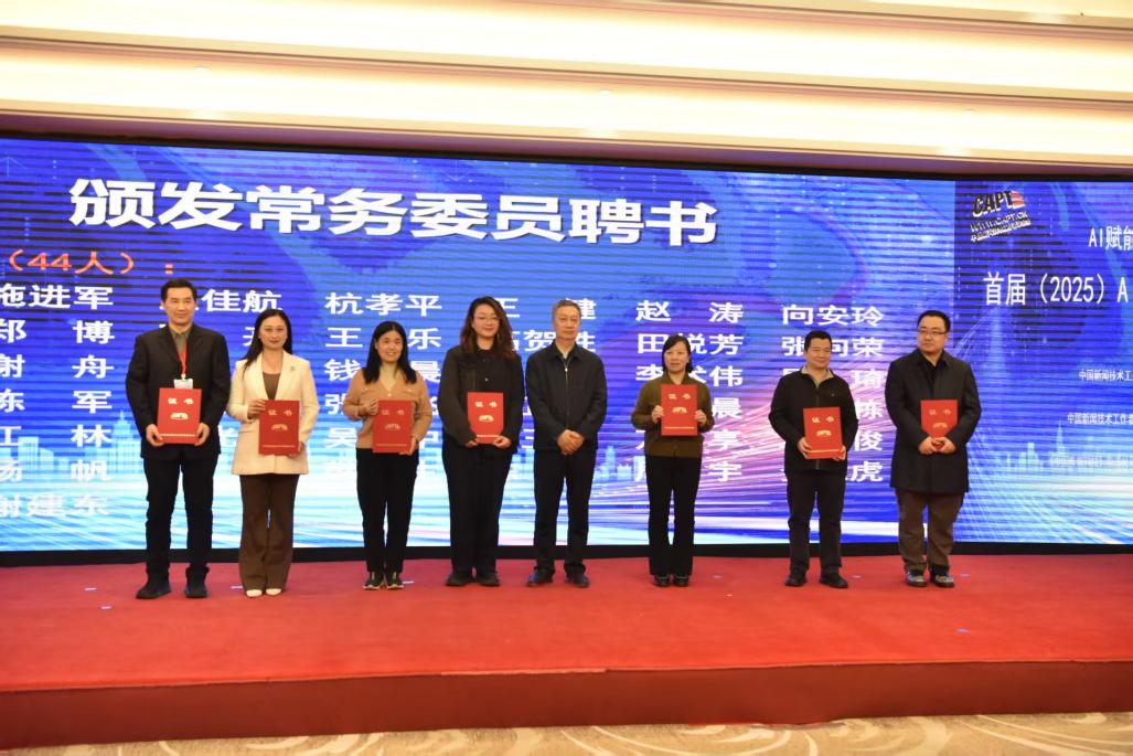 开幕式还进行了颁发《中国传媒科技创新报告(2025):传媒科技赋 能媒体主流影响力评价研究》案例入选证书颁发仪式,中国新闻技术工作者联合会AIGC与数智传播专委会(成都)数智融媒创新中心签约及最新新闻传播机器人等设备发布仪式。同时,开幕式还举行了第一届委员会成员颁发聘书的仪式。艺术与传媒学院李文波院长当选为“中国新闻技术工作者联合会AIGC与数智传播专业委员会”第一届常务委员。