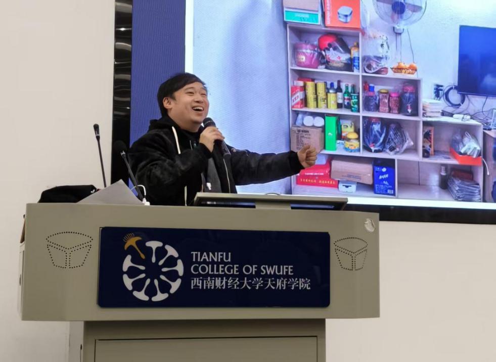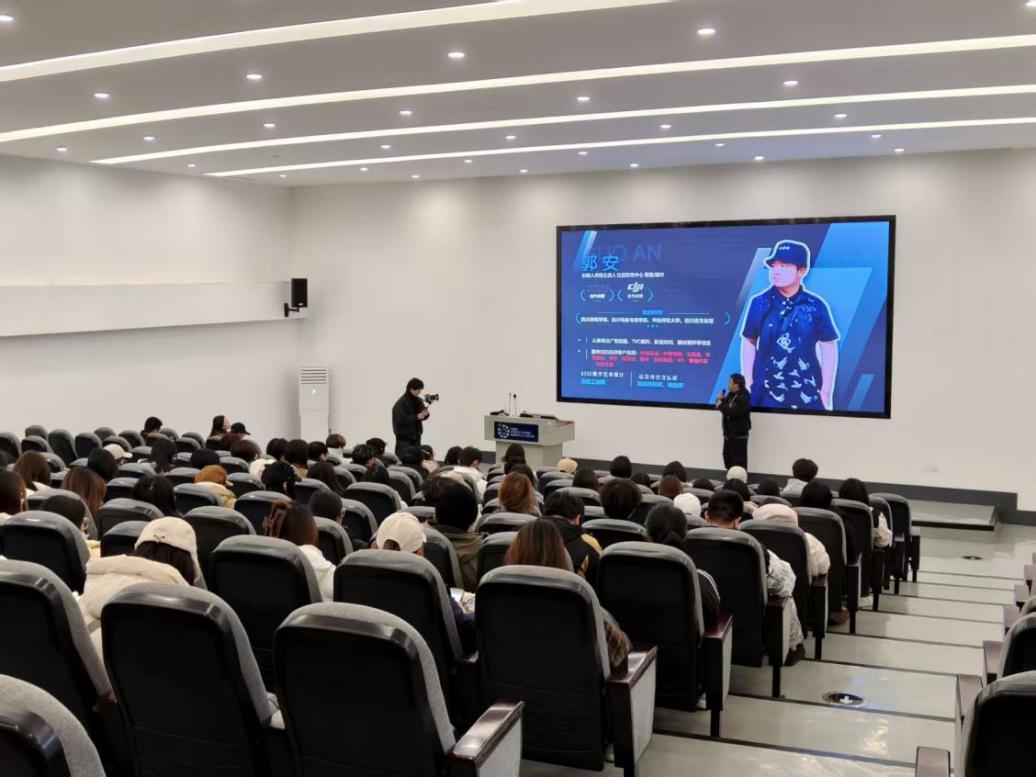 2025年12月22日,西南财经大学天府学院艺术与传媒学院媒体与传播系在德阳校区B101报告厅成功主办了“从校园走进影视行业”专题分享会暨专业设备体验活动。本次活动特邀行业资深导师、比蓝影像中心导演郭安先生担任主讲人。郭安老师作为索尼、大疆等知名影像企业的合作讲师,拥有深厚的行业实战经验与教学资历,其团队曾为包括中石油、字节跳动在内的多家知名企业提供专业服务。讲座现场气氛热烈,吸引了网络与新媒体、数字媒体艺术、融媒体技术与运营等专业的近百名学生踊跃参与。师生围绕影视行业生态、岗位体系及职业发展路径进行了深入交流与探讨。