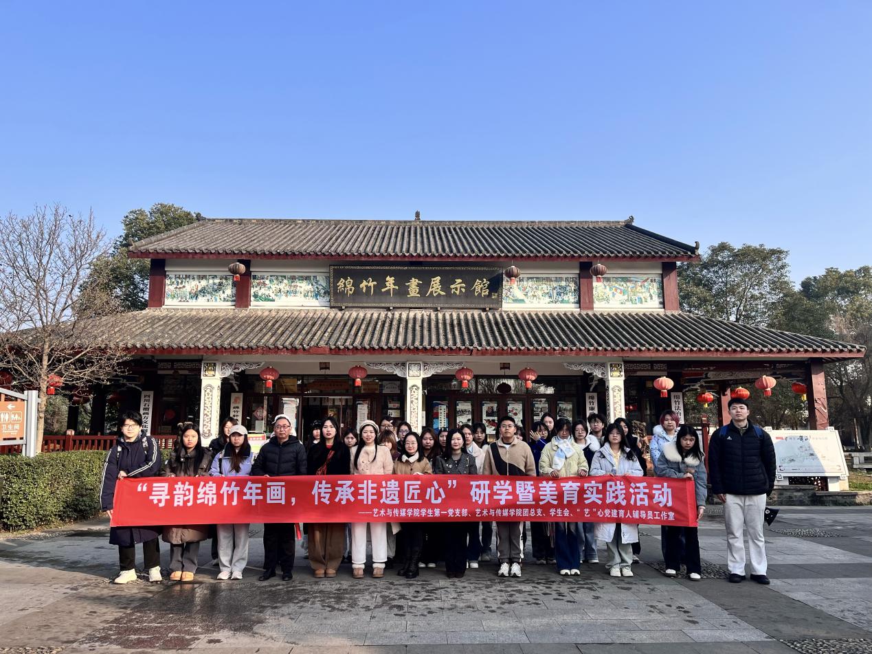 为深化青年学子对非遗文化与传统民间艺术的认知,搭建理论与实践融合的文化探究平台,激发学生守护文化根脉的自觉意识,1月8日,艺术与传媒学院学生第一党支部、团总支、“艺”心党建育人辅导员工作室联合组织青年学生,在学院分党委副书记马俊的带领下前往绵竹年画村,开展非遗文化研学暨美育实践活动。