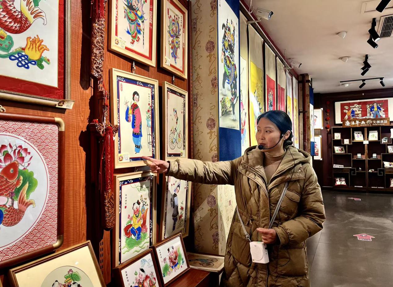 何花对绵竹年画作品进行讲解