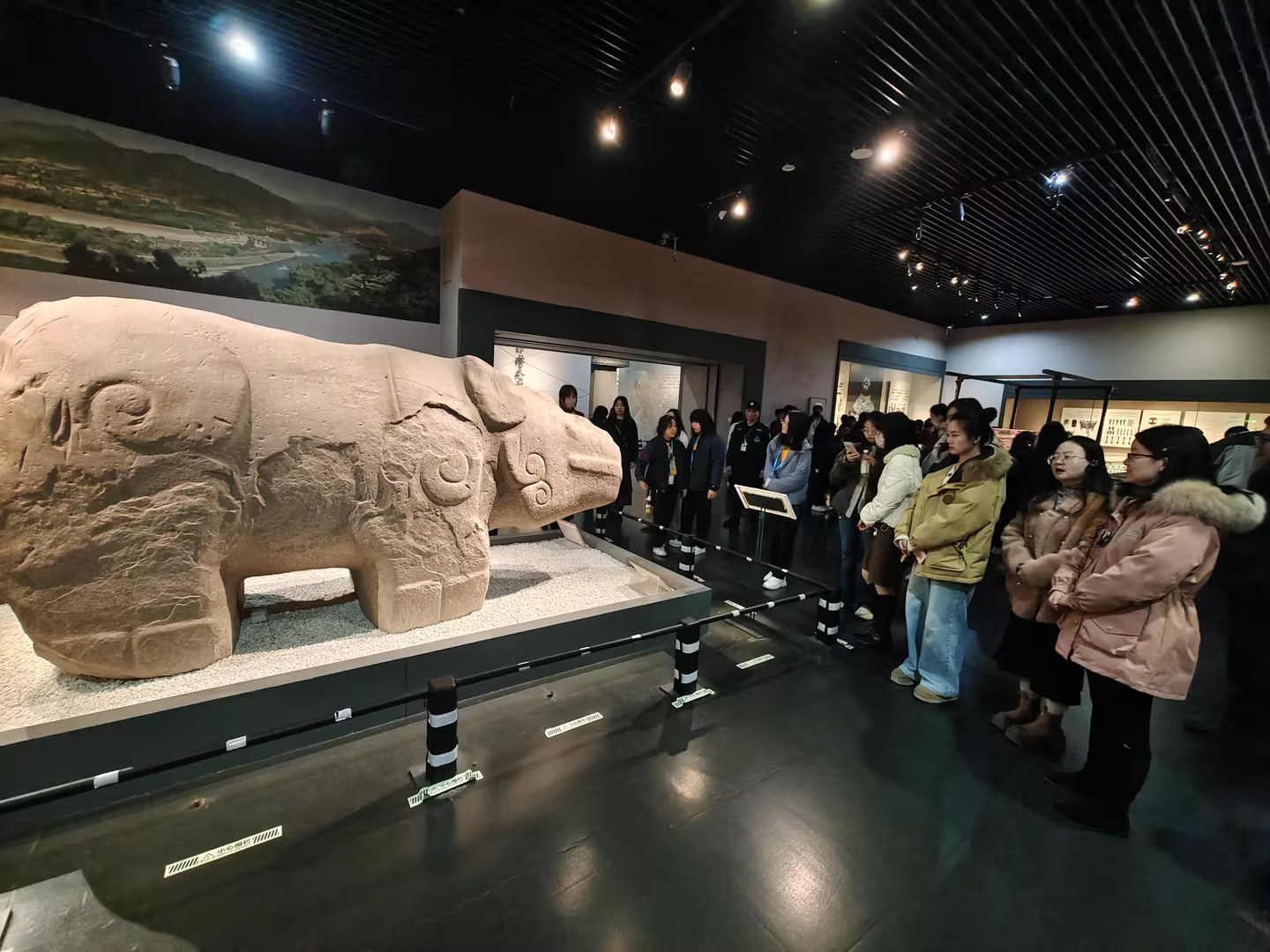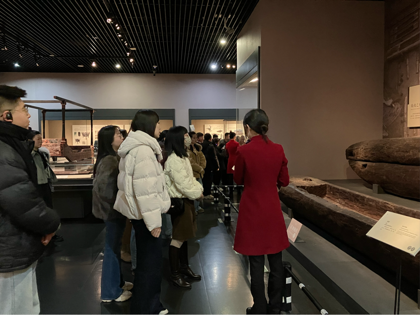 1月9日上午,艺术与传媒学院及国际教育学院辅导员前往成都博物馆进行参观活动。在讲解员的引领下,依次来到展馆二楼,该展厅以先秦时期蜀文化的发展脉络为主线,聚焦新石器时代晚期的宝墩文化古城址群、约当夏商周时期的三星堆遗址与金沙遗址、战国时期的商业街船棺葬及巴蜀图语等内容,凭借 240 余件精品文物,集中展现了先秦时期古蜀文明的瑰丽神奇。三楼主要呈现了成都在隋唐五代宋元时期作为西南大都会的繁华兴盛之景,展品涵盖瓷器、陶器等,彰显了不同时期成都的特色。四楼的民俗篇展示了成都的历史文化,其漫长的发展历程铸就了独特的人文气质与精神风貌。五楼的“中国皮影博物馆”堪称民间艺术的宝库。老师们深切感受着中华文明的包容性与影响力,将以此次活动为契机,持续深化协同合作,共享育人资源、共研育人方法,打造跨学院文化育人品牌活动。联合引导学生讲好中国故事、传播巴蜀文化,培养兼具文化素养与国际视野的时代新人。