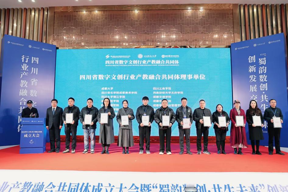 四川省数字文创行业产教融合共同体的成立,为高校与产业界搭建了资源共享、协同发展的重要桥梁。艺术与传媒学院始终秉持“新科技,新艺术,新融合,新天地”的专业建设思路,深耕数字文创领域产教融合实践。并将以理事单位身份积极履职,充分发挥学科交叉优势与产教融合实践经验,与各成员单位携手探索数字文创人才培养新路径、产业创新发展新动能,为四川文化强省建设与数字经济高质量发展贡献天府智慧与艺术力量。