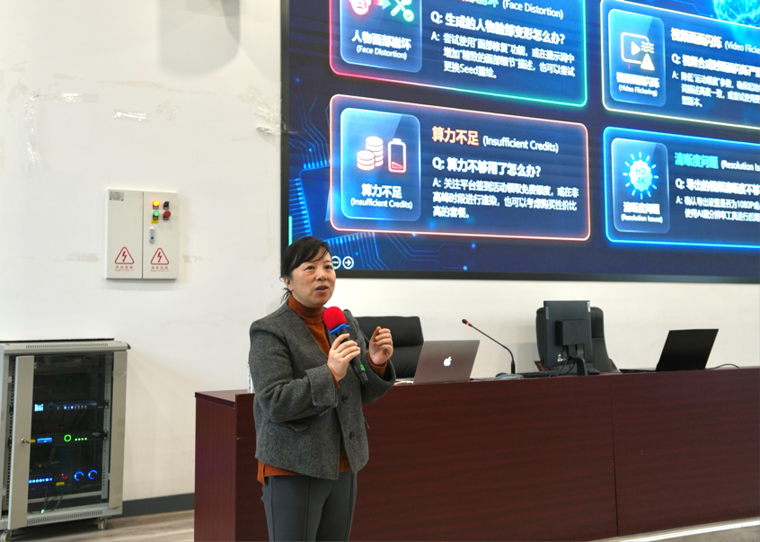 培训课程采用“理论深度解析+实操技能演练+案例复盘研讨”的三维教学模式,内容覆盖AIGC技术发展前沿、视听语言变革逻辑、AI视频脚本生成、智能素材采集与处理、AI特效制作、全流程剪辑合成等核心模块。授课专家结合自身丰富的行业经验与教学实践,不仅系统解读了AIGC技术对影视创作、新媒体传播等领域的颠覆性影响,更聚焦AI视频制作全流程中的关键技术难点与创作技巧,通过现场示范、分组实操、一对一指导等方式,确保教师们熟练掌握主流AI创作工具的应用方法。
