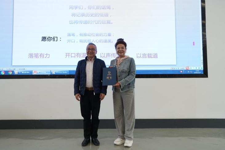 吕丹老师结合自身多年一线播音主持经验,从新闻语言的精准性、情感传递的技巧、全媒体时代的表达创新等维度展开讲解。她通过经典案例分析与现场示范,生动展现了如何用声音传递新闻温度、用语言承载社会责任,让在场师生深刻感受到新闻传媒语言的独特魅力。吕丹老师还与同学们进行互动交流,针对播音发声、稿件处理、镜头前表达等问题逐一解答,为学子们的专业学习提供了切实指导。讲座结束后,张之明副校长向吕丹老师授予了西南财经大学天府学院客座教授聘书。