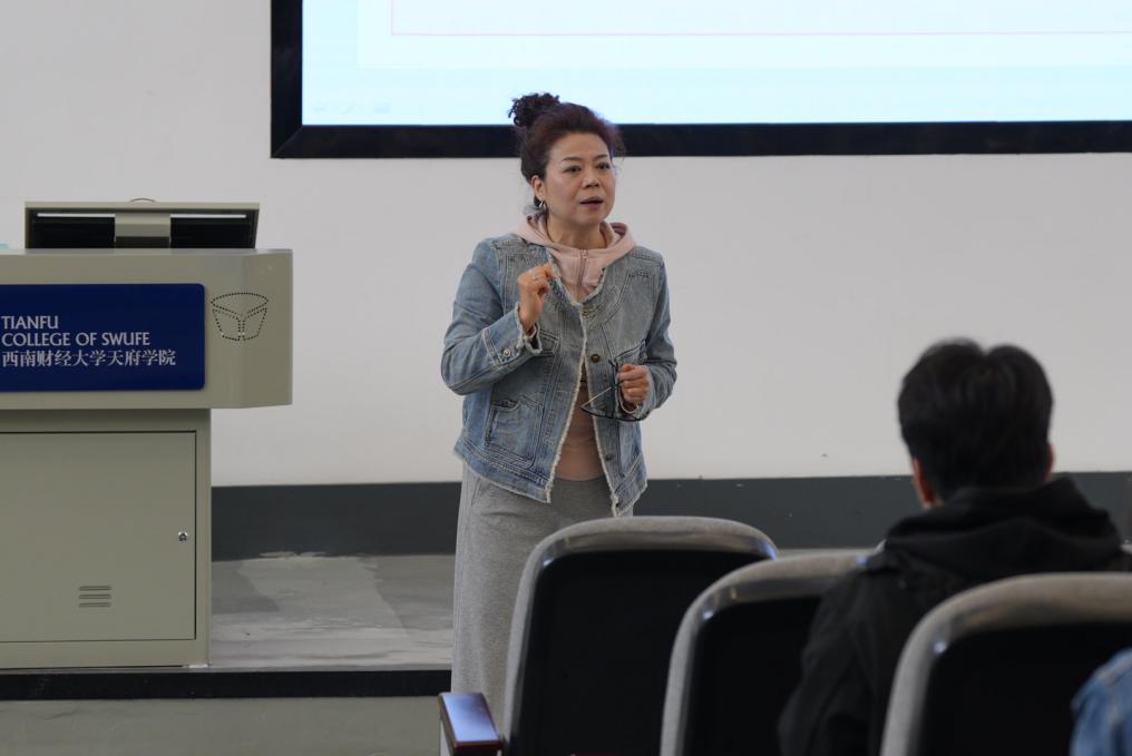 2026年3月27日,主题为“以声传情,以言载道——新闻传媒人的语言表达魅力”的专题讲座于西南财经大学天府学院德阳校区B301教室顺利举行。本次讲座特邀播音指导、四川广播电视台全媒体中心新闻主播、十佳主持人吕丹担任主讲人,为学院师生开展语言艺术与新闻传播领域的专业分享,助力学子提升播音主持及新闻表达能力。学校副校长张之明、艺术与传媒学院院长李文波出席了此次活动。本次讲座由艺术与传媒学院媒体与传播系庄悦、邵奎淙两位老师组织,现场由王健老师主持。
