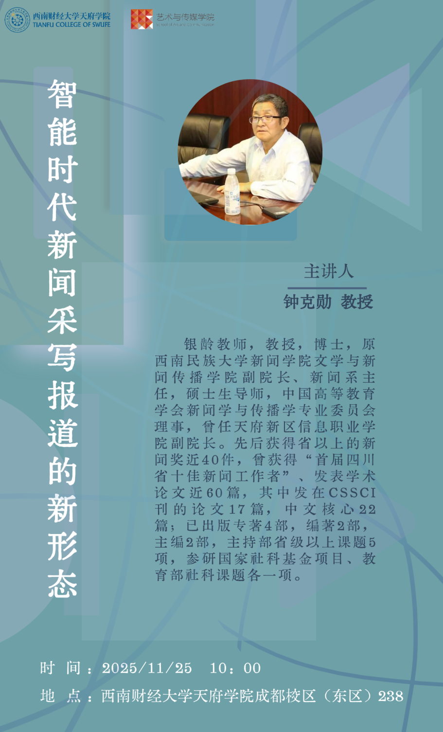地点:西南财经大学天府学院成都校区(东区)238报告厅
