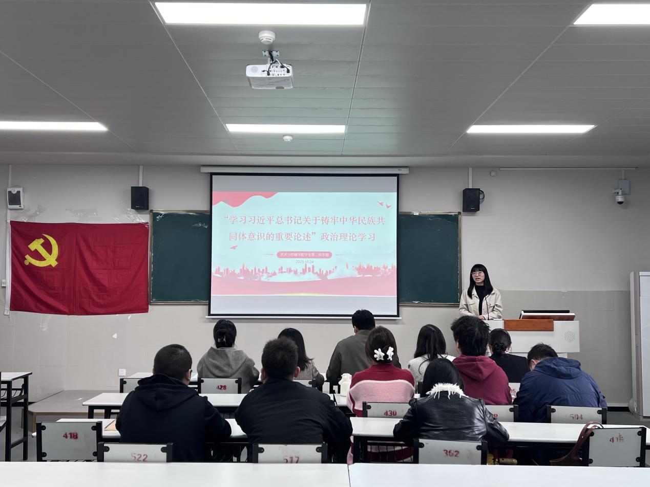 为深入学习贯彻习近平总书记关于加强和改进民族工作的重要思想,全面落实党的民族工作方针,紧紧围绕立德树人根本任务,切实铸牢中华民族共同体意识,10月24日下午,艺术与传媒学院学生第二党支部在成都校区(东区)L5-345 教室召开政治理论学习专题会议。会议由学生第二党支部书记苟明娇主持,支部全体师生党员全程参与,共同围绕“铸牢中华民族共同体意识”展开深入学习与交流。