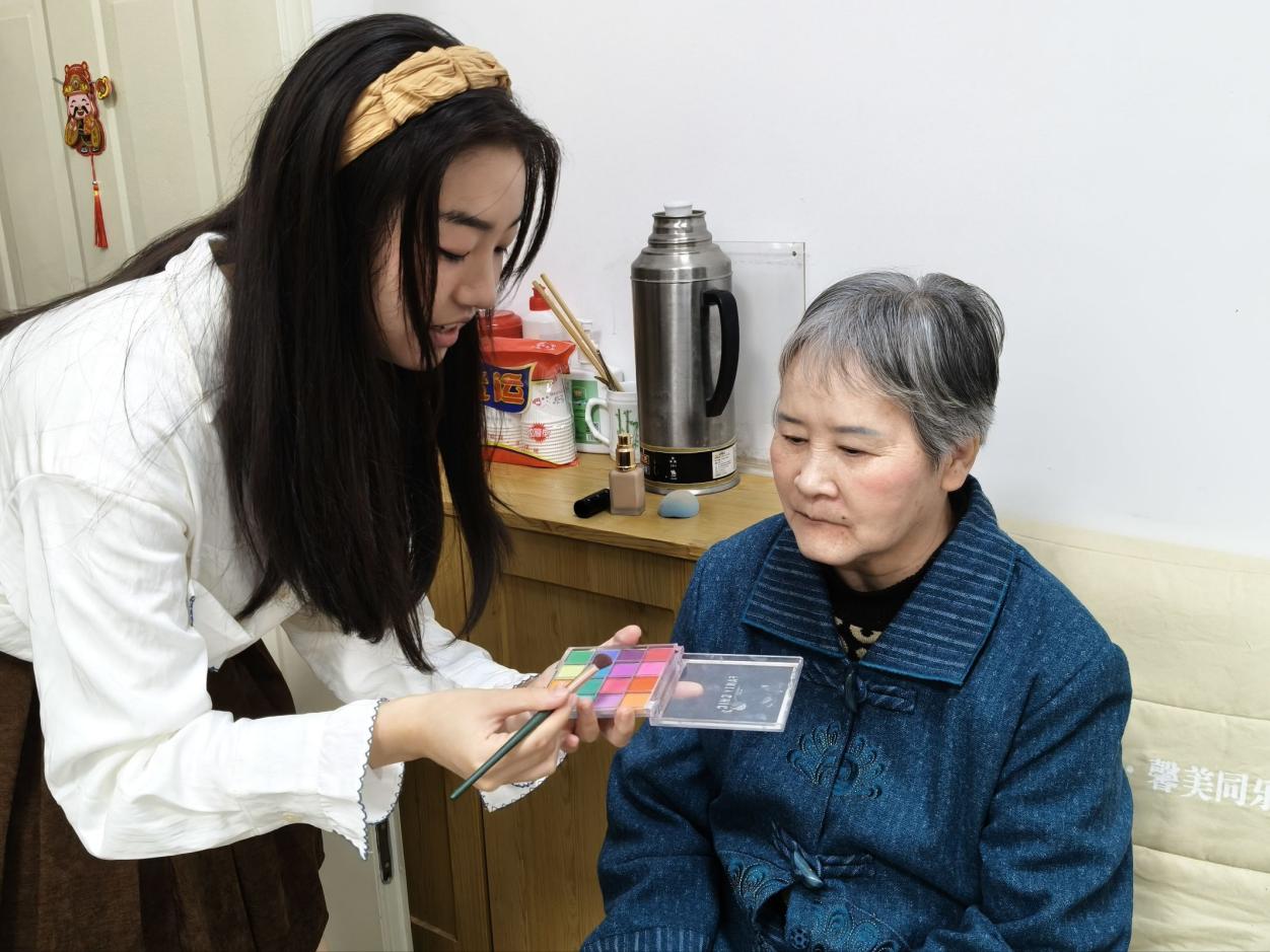学生为老人化妆