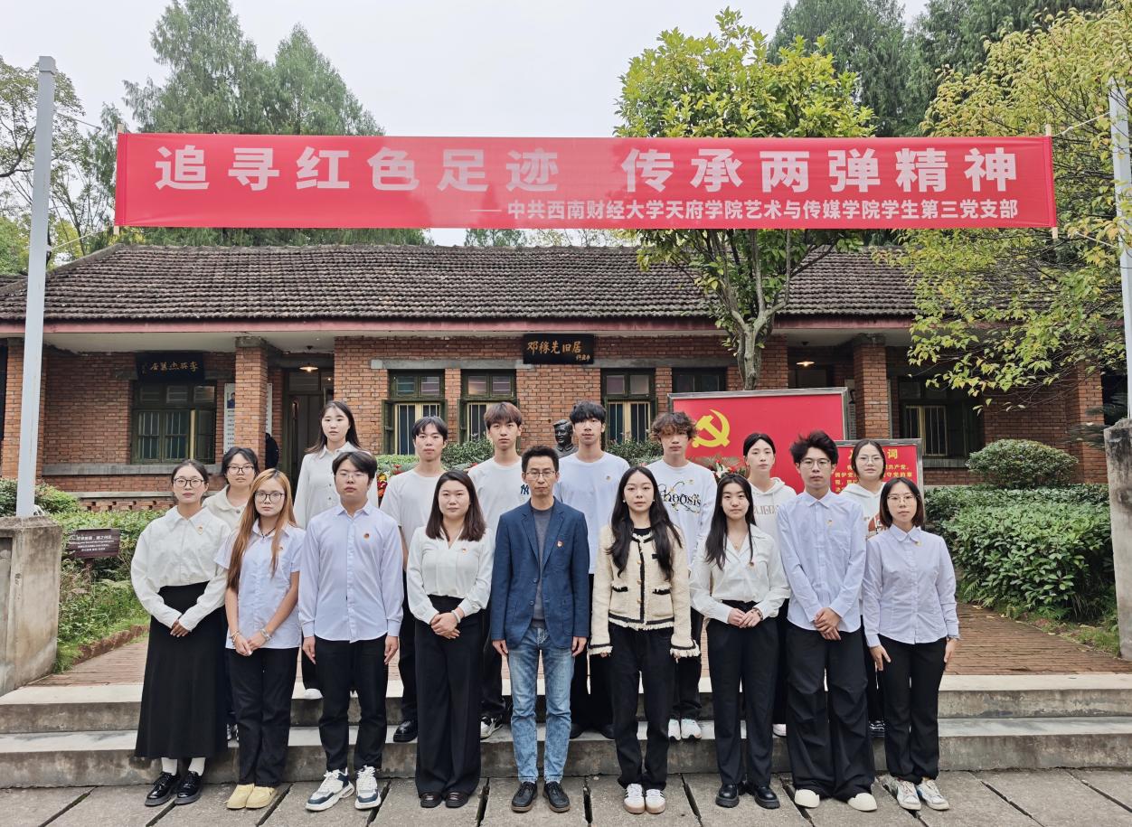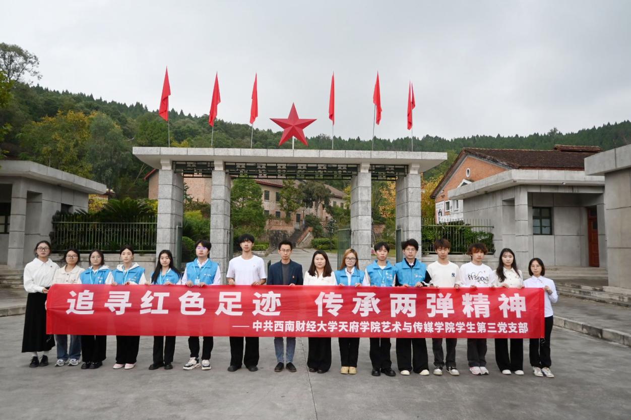 为深化党性教育、传承红色基因,厚植强国有我的使命担当,进一步开展好“两弹一星”精神的宣讲,10月30日,艺术与传媒学院学生第三党支部组织师生前往绵阳市梓潼县两弹城开展“追寻红色足迹,传承两弹精神”红色研学活动,教师党员丁世建、周莉、刘幸,“两弹一星”青年宣讲团“阡陌行者”和“盈见青心,核舟共济”成员及入党积极分子共17人参与此次活动。