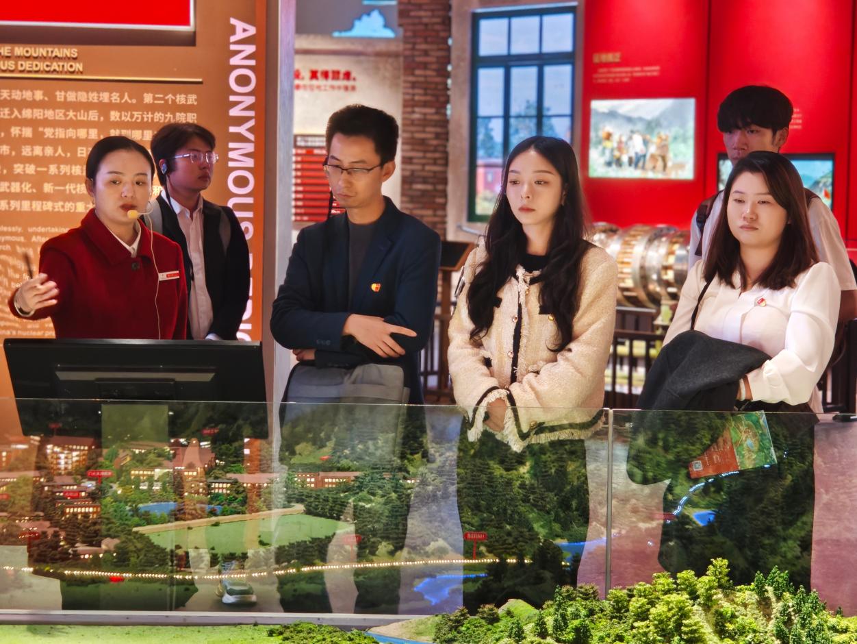 师生们首先参观了两弹城博物馆。博物馆展陈内容以“两弹”发展历程为主线,分为序厅篇章、时代决策、铸就辉煌、峥嵘岁月、融合发展、科技兴市6个板块。大家在详实的历史图片、珍贵的文物实体和生动的视频影像资料前驻足聆听讲解,全面了解中国原子弹、氢弹的研制背景与过程,深刻感受科研工作者在艰难条件下自强、在艰苦奋斗中前进的精神品质。