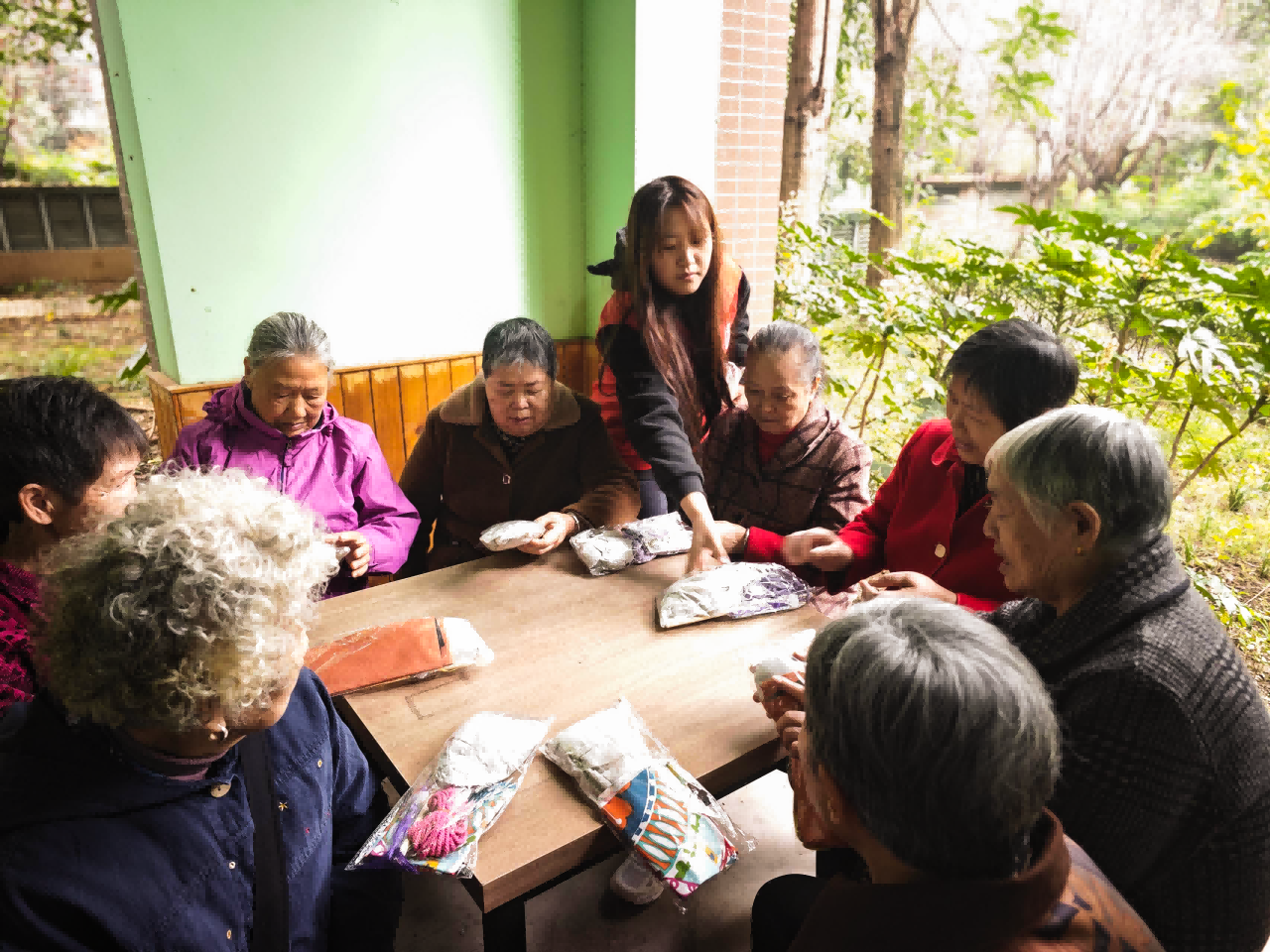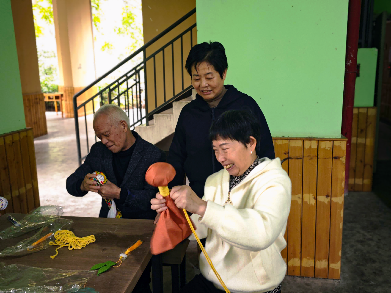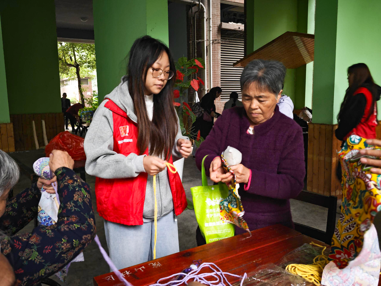 社区工作人员为大家详细讲解本次活动中艾草锤的制作方法,支部师生与社区工作人员分组协作,开启了艾草锤的制作工作。活动过程中,李思佳、朱琳、芶宇婧耐心地协助社区老年人完成艾草锤的制作。活动现场,支部师生与社区老人携手制作艾草锤,进一步加深了对传统节日文化的认识,大家共同度过了一段短暂却欢乐的时光,切实增进了校社联动。