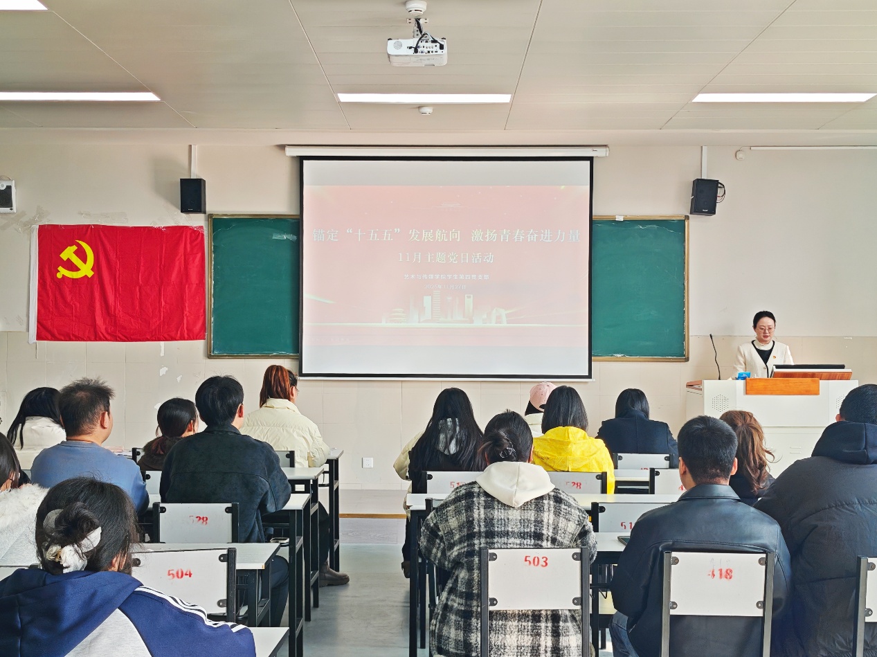 为深入贯彻党的二十届四中全会精神,将青春奋斗融入“十五五”发展宏伟蓝图,以蓬勃朝气与责任担当书写新时代青年答卷,11月27日,艺术与传媒学院学生第四党支部组织全体党员、预备党员、入党积极分子于成都校区(东区)L5-345教室开展了“锚定十五五发展航向,激扬青春奋进力量”主题党日活动,学院学生第四党支部书记陈思主持本次活动。