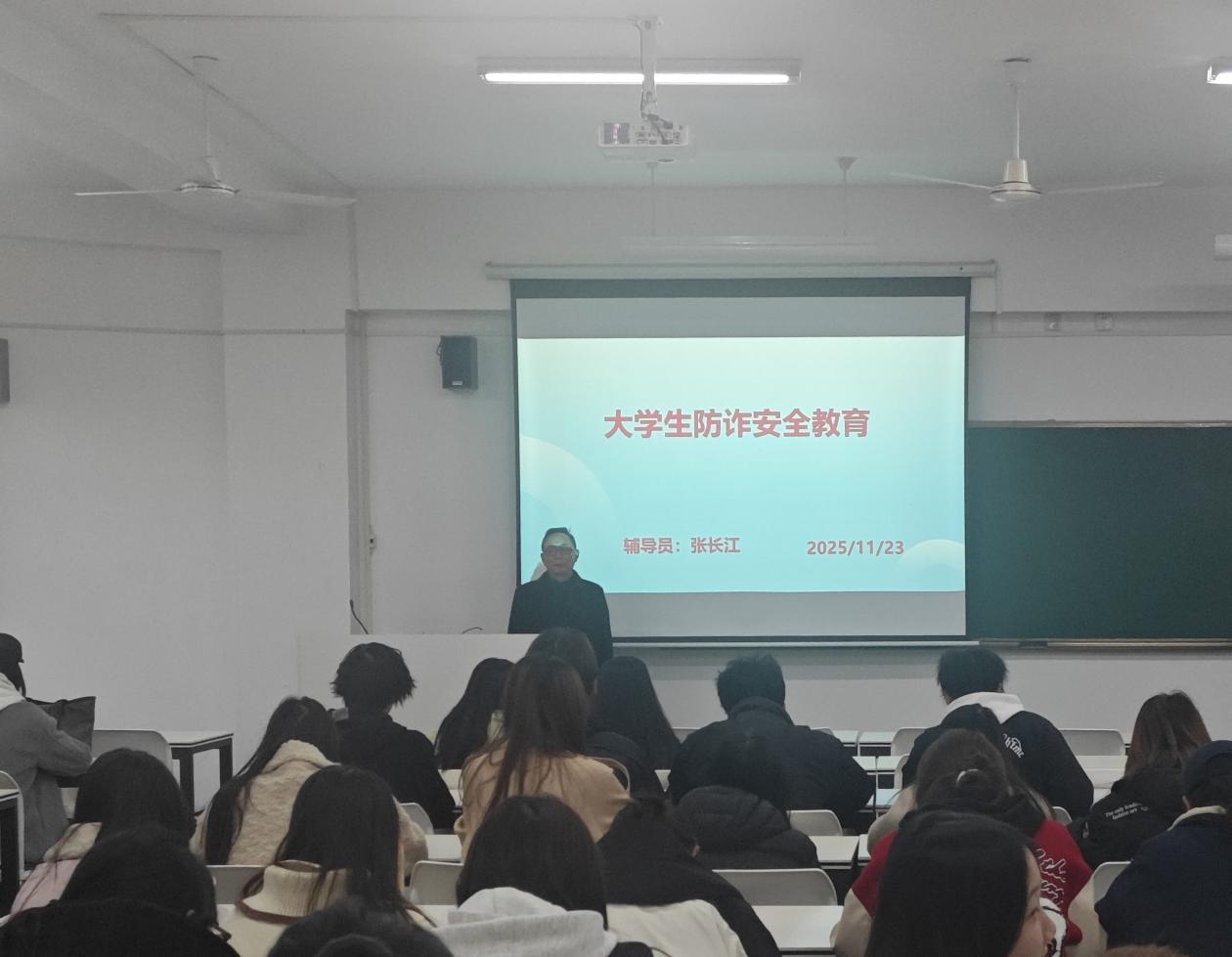 班会现场,辅导员们结合近期校园及周边真实案例,聚焦学生易遭遇的诈骗类型逐一剖析。从“冒充客服退款”“虚假购物”等传统骗局,到“校园贷”“注销校园贷”等高频陷阱,再到AI语音合成、视频伪造等新型诈骗手段,辅导员们详细拆解了诈骗分子的话术设计、诱骗逻辑,点出学生因防范薄弱、贪小便宜、信息泄露等导致被骗的核心问题。