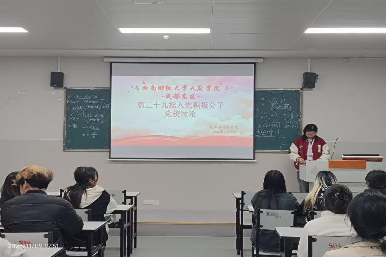10月25日上午,党校学习在成德绵三校区同步开展。成都校区(东区)教学楼238大教室党校分会场,学校党委工作部干事冯梦然向全体与会学员介绍了培训班课程安排、考核方式、纪律要求,课程包括理论学习、学员论坛、学习心得、志愿服务实践、结业考试,叮嘱全体学员要自觉遵守学习纪律,认真对待每一个培训环节,认真完成“线上+线下”理论学习,积极参与分组研讨和实践活动,真正做到夯实理论根基,提升党性修养,争取早日加入党组织,成为一名光荣的中国共产党党员。