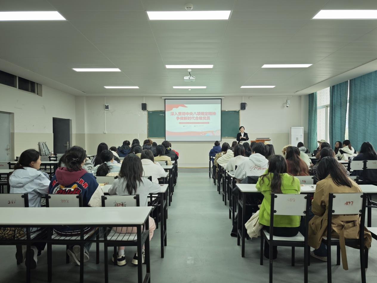 11月4日,学院分党委书记彭雯秀以《深入贯彻中央八项规定精神——争做新时代合格党员》为主题进行专题授课。彭雯秀全面阐述了中央八项规定精神作为新时代管党治党的“金色名片”,讲解了“中央八项规定”的具体内容,强调了中央八项规定精神是全党同志的共同遵循。习近平总书记强调,作风问题的核心是党同人民群众的关系问题,加强作风建设必须紧扣保持党同人民群众血肉联系这个关键。结合对党的作风建设历程回顾与贯彻落实新时代党的建设总要求,彭雯秀引导学员要将贯彻落实中央八项规定精神内化为思想自觉与行动自觉,以“钉钉子”精神锤炼务实作风,在日常学习工作中做到求真务实、廉洁自律,筑牢党群干群血肉联系的根基。