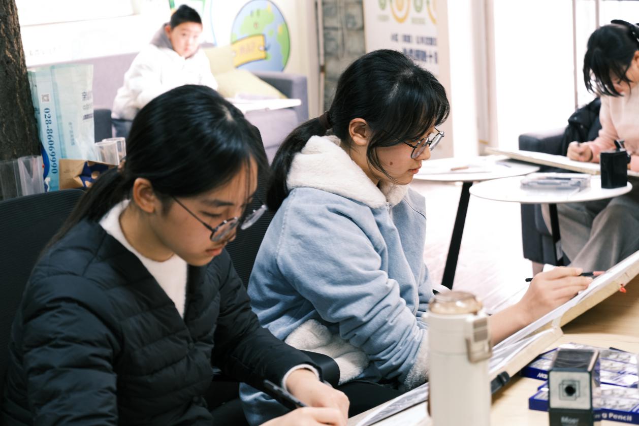 学生认真创作(汇泽社区)