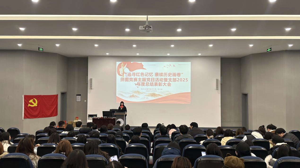 为传承红色基因,凝聚支部力量,深化党性教育,12月23日中午,艺术与传媒学院学生第二党支部举办“追寻红色记忆 赓续历史画卷”拼图竞赛主题党日活动暨支部2025年度总结表彰大会。支部全体师生党员、入党积极分子参与此次活动,本次活动由支部书记苟明娇主持。