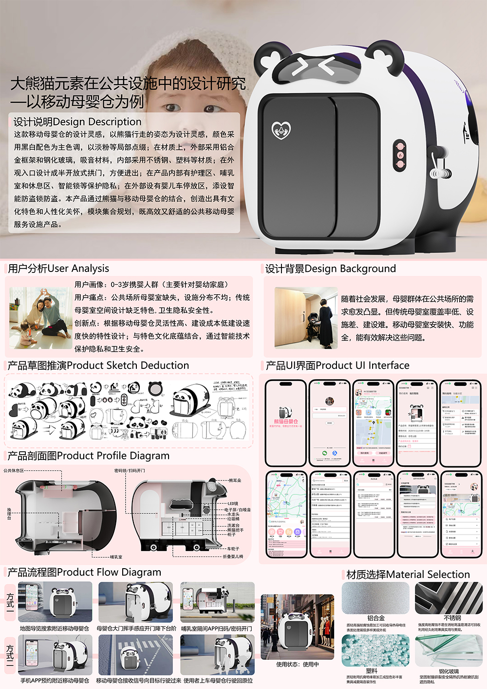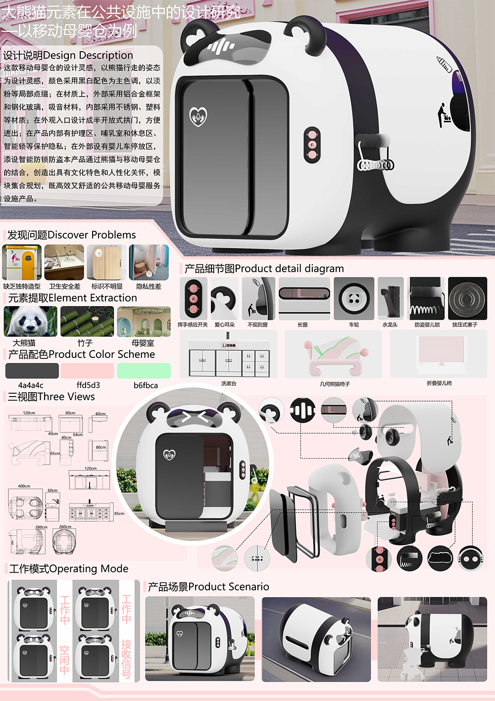 作品名称:大熊猫元素在公共设施中的设计研究—以移动母婴仓为例