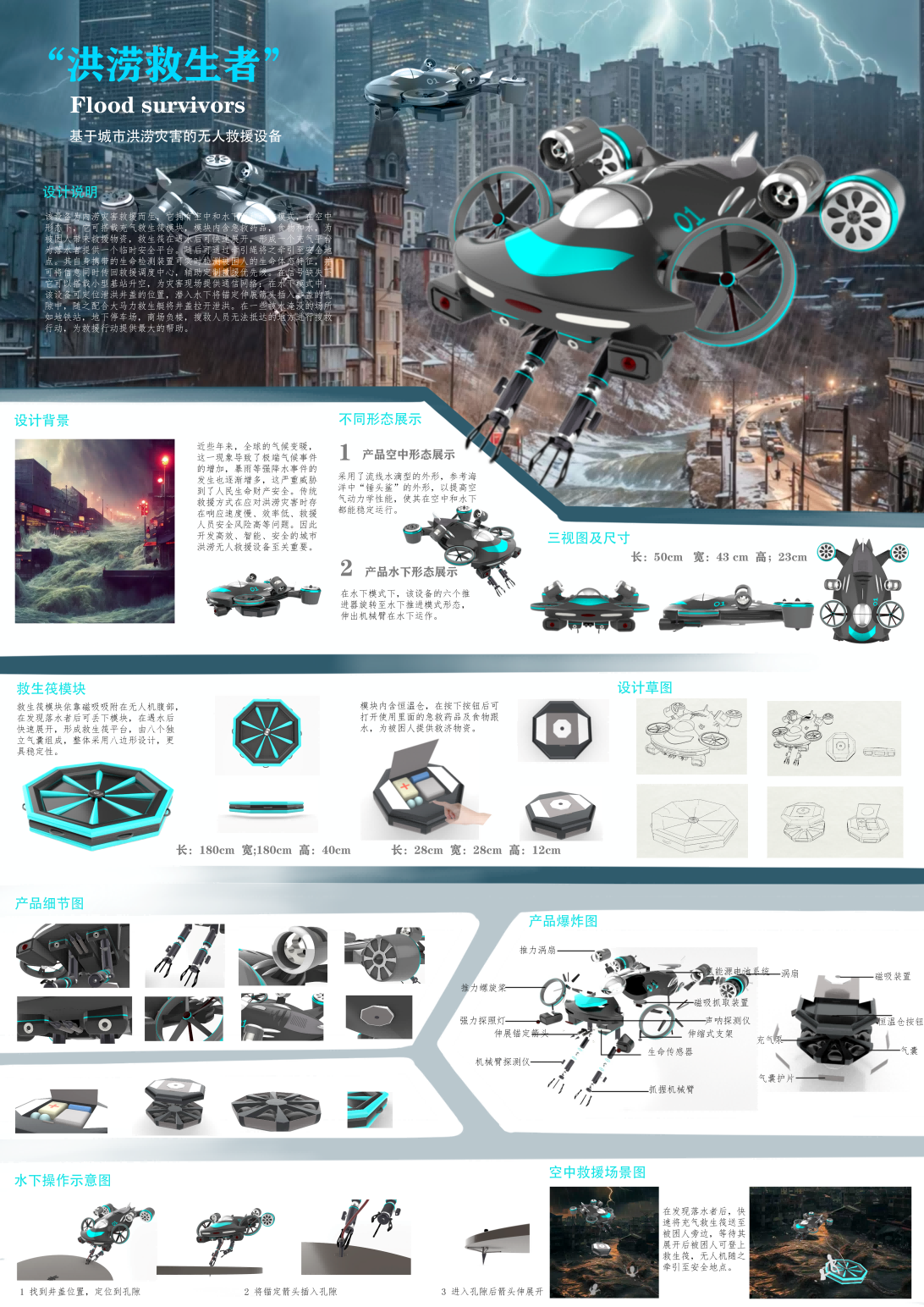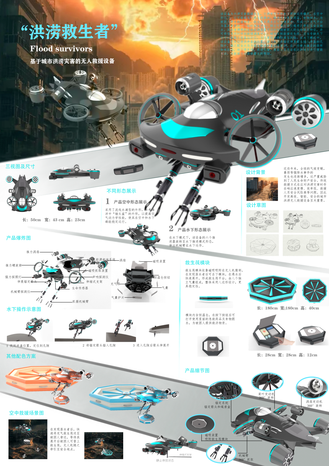 作品名称:《城市洪涝无人救援设备设计研究》