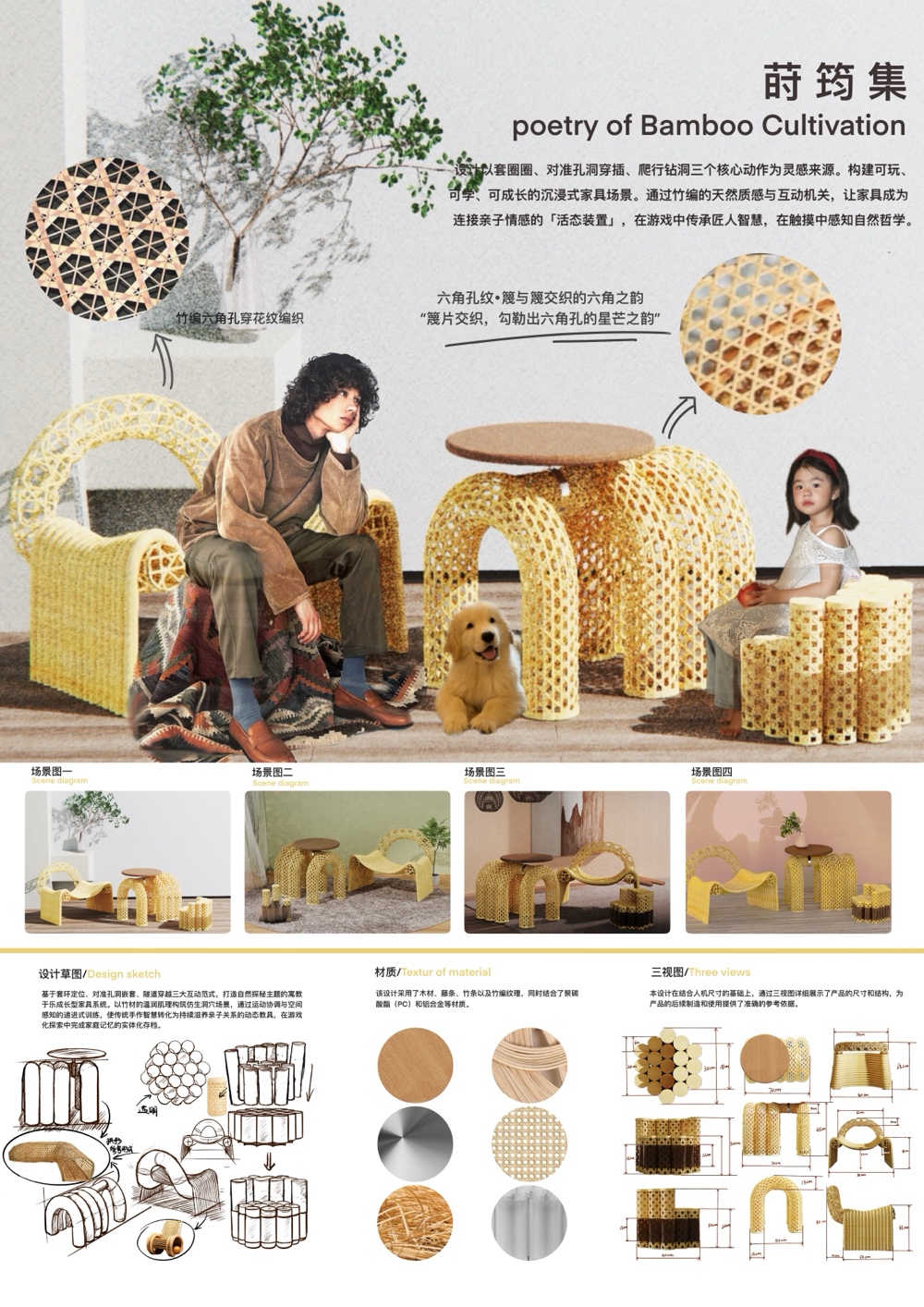 作品名称:《基于情感互动视角下的亲子家具系列化设计——以竹编元素的应用为例》