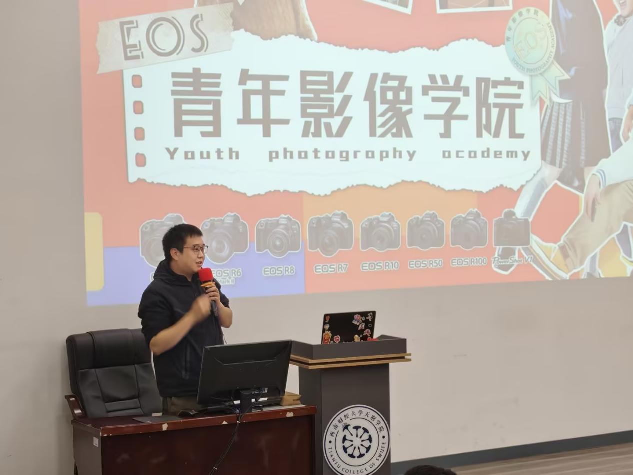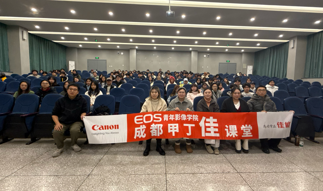 讲座伊始,佳能品牌负责人杨帅表示佳能始终关注青年创作者的成长与发展,“青年影像学院”系列活动旨在通过技术分享、设备支持、实践指导等形式,为高校学生搭建对接行业的桥梁。“西南财经大学天府学院在传媒类人才培养方面有着鲜明的特色与优势,期待以此次活动为起点,深化双方后续合作,共同探索技术赋能下的艺术人才培养新模式,为行业输送更多优质后备力量。”
