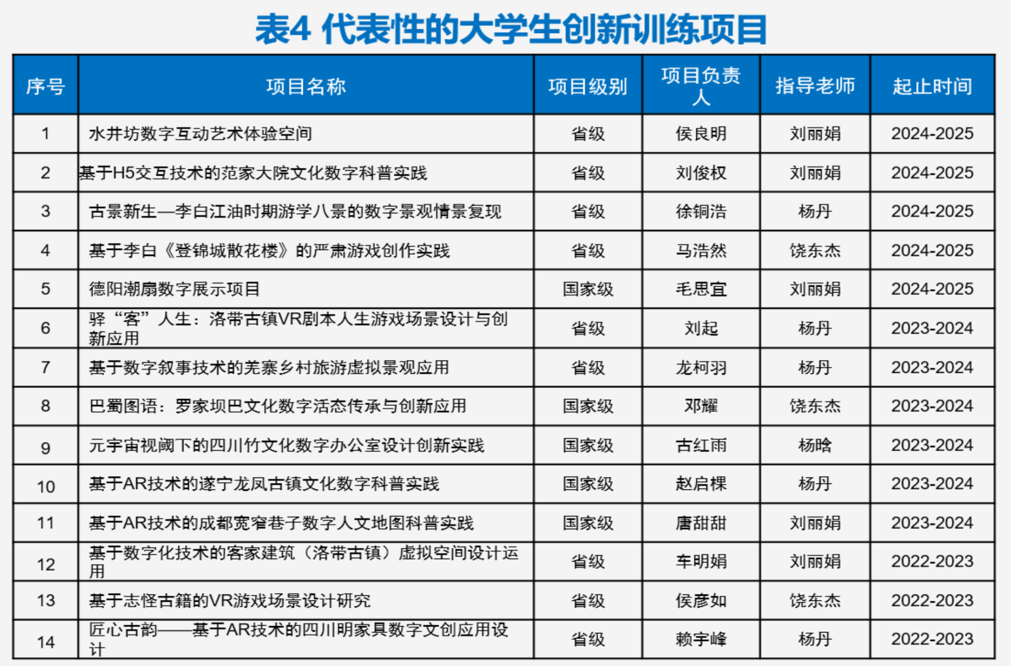 1. 数字人文视域下的德阳古蜀道历史可视化服务体系研究,德阳市哲学社会科学规划 2025 年度“党的二十届三中全会暨省委十二届六次全会精神研究阐释”专项课题,项目编号DY25ZX011;
